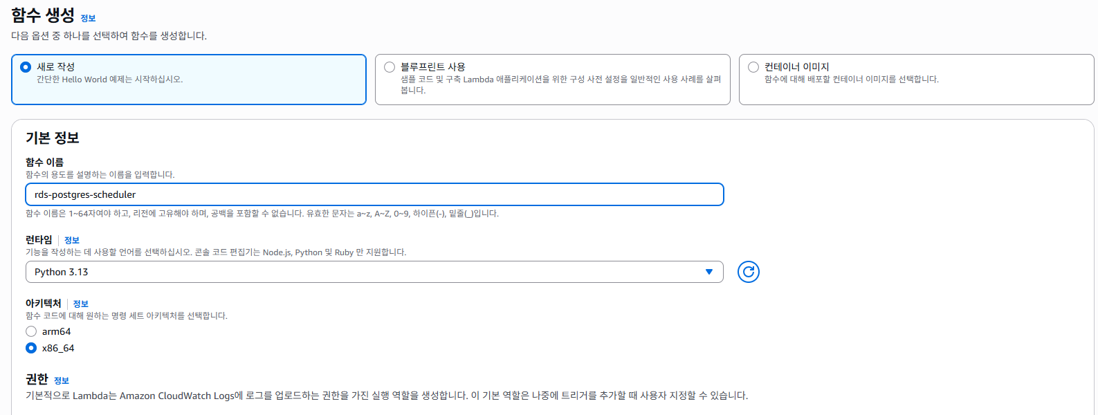 - 함수 이름 : rds-postgres-scheduler