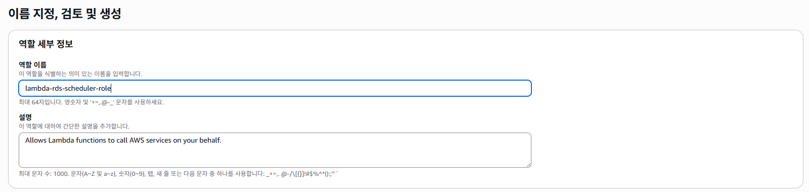- 역할 이름: lambda-rds-scheduler-role