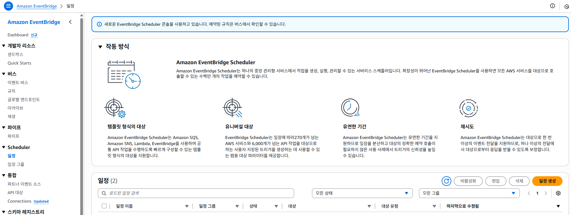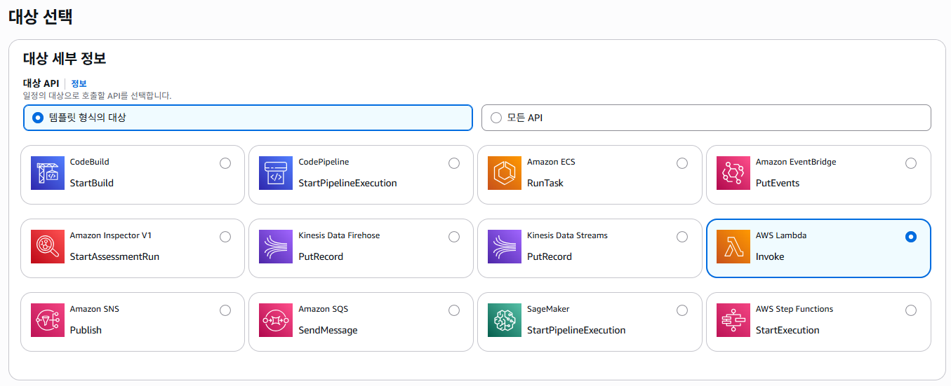 AWS 콘솔 → EventBridge → [일정] → [일정생성]