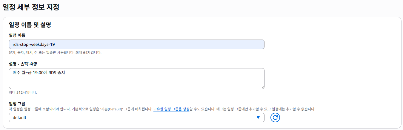 - 일정 이름 : rds-stop-weekdays-19