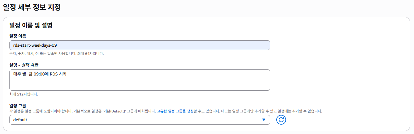 - 일정 이름 : rds-start-weekdays-09