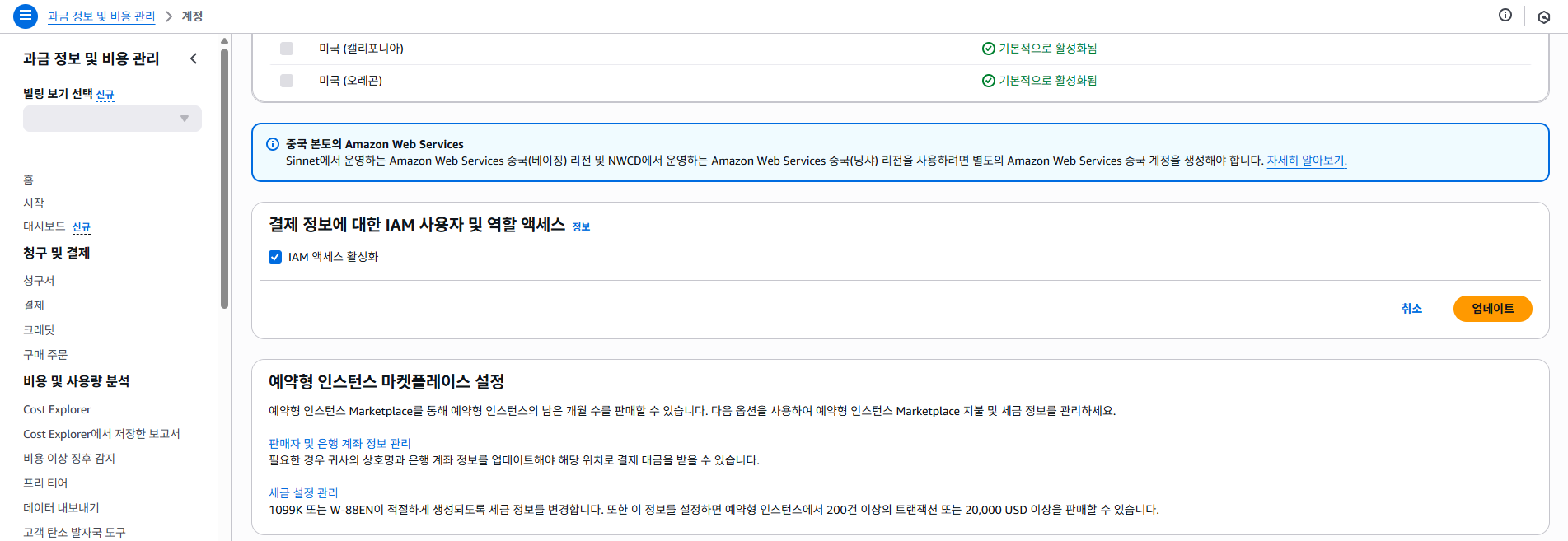 1. Root 계정에서의 [ 결제 정보에 대한 IAM 사용자 및 역할 액세스] 활성화